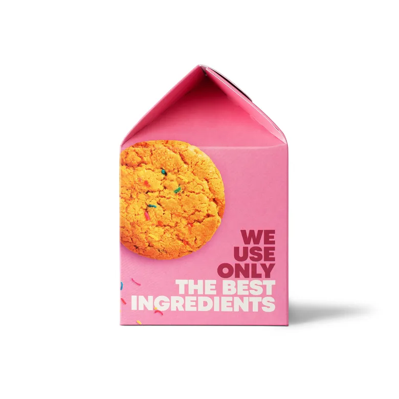 Each 220g box contains 5 BIG, shareable cookies packed with real, high-quality ingredients: smooth vanilla notes, buttery richness, and vibrant rainbow sprinkles that make every cookie a celebration. They’re the ultimate feel-good snack that’s as delicious as it is eye-catching — perfect for brightening up any day!