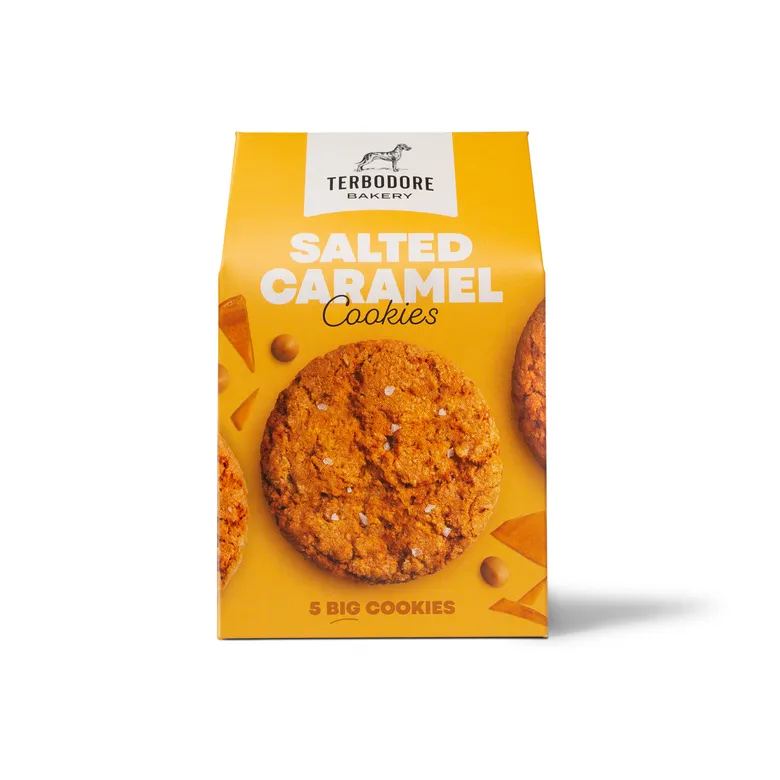Each 220g box contains 5 BIG, shareable cookies, packed with real, high-quality ingredients that deliver serious indulgence. Salt and caramel were simply made for each other, and Terbodore elevates this winning combo into something truly special — rich, comforting, and seriously moreish.