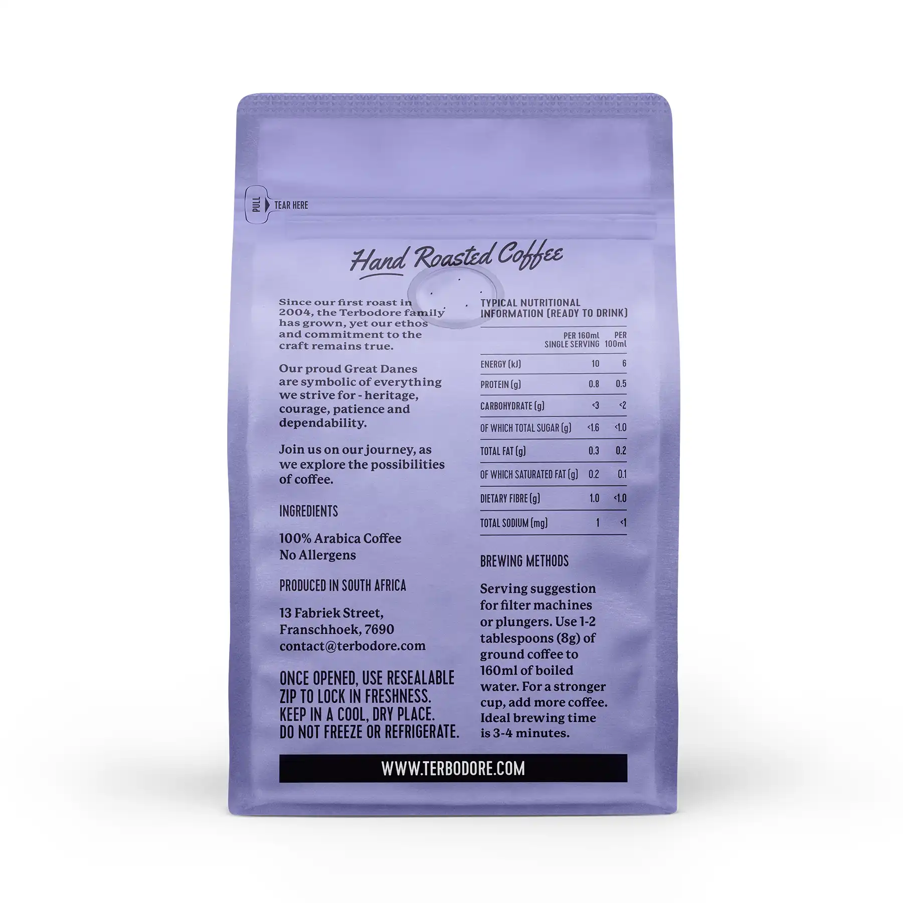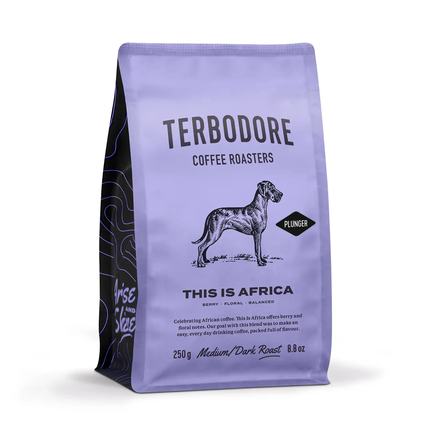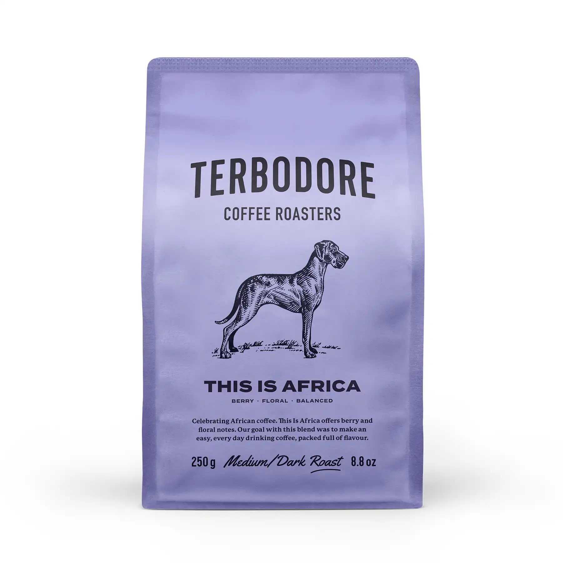 Discover This Is Africa – a heartfelt medium-to-dark roast blend from Terbodore Coffee Roasters, expertly hand-roasted in small batches in Franschhoek, South Africa. Created as a tribute to the richness and diversity of African coffee, this special blend is crafted exclusively from the finest African beans, carefully selected to highlight the continent’s vibrant and expressive flavour profiles.