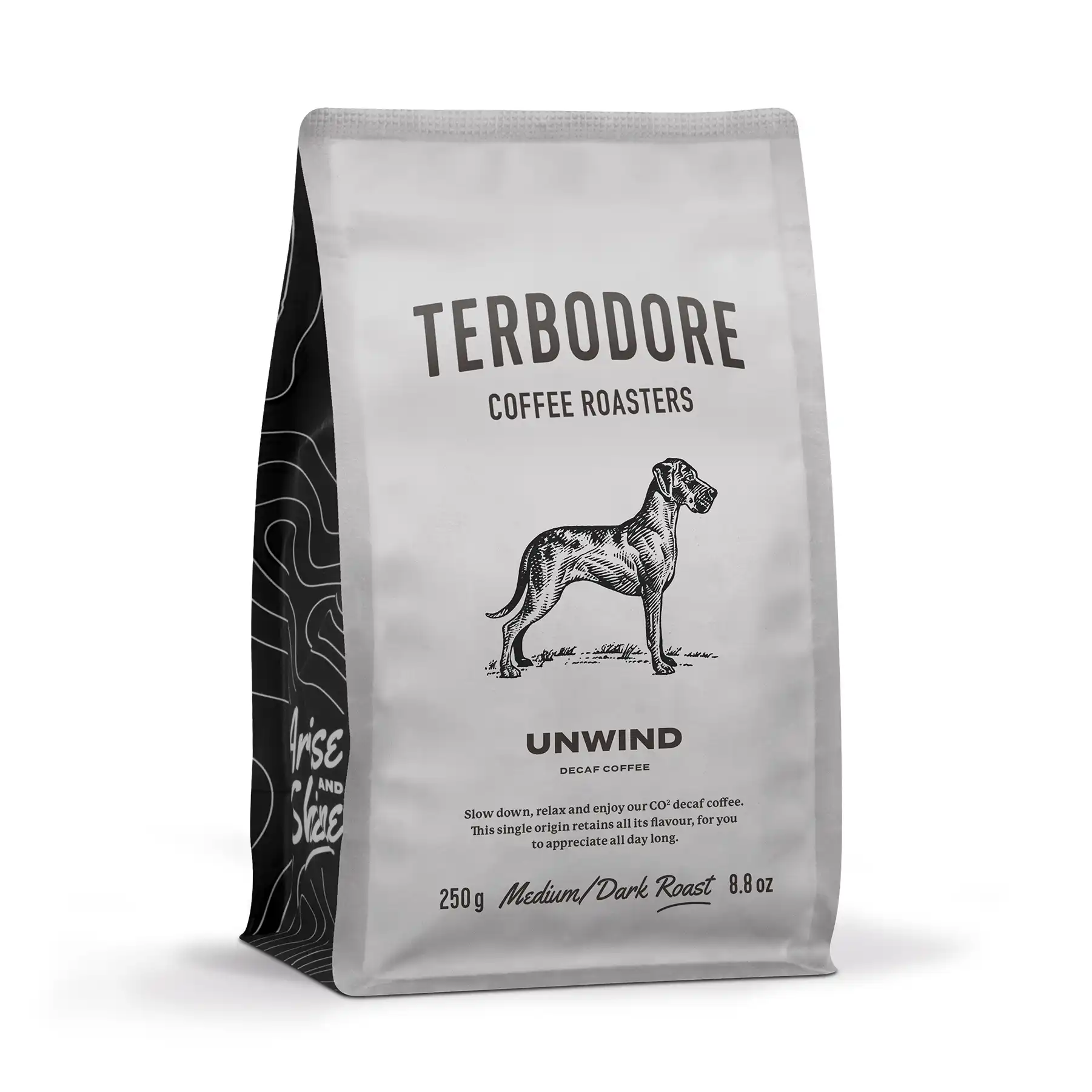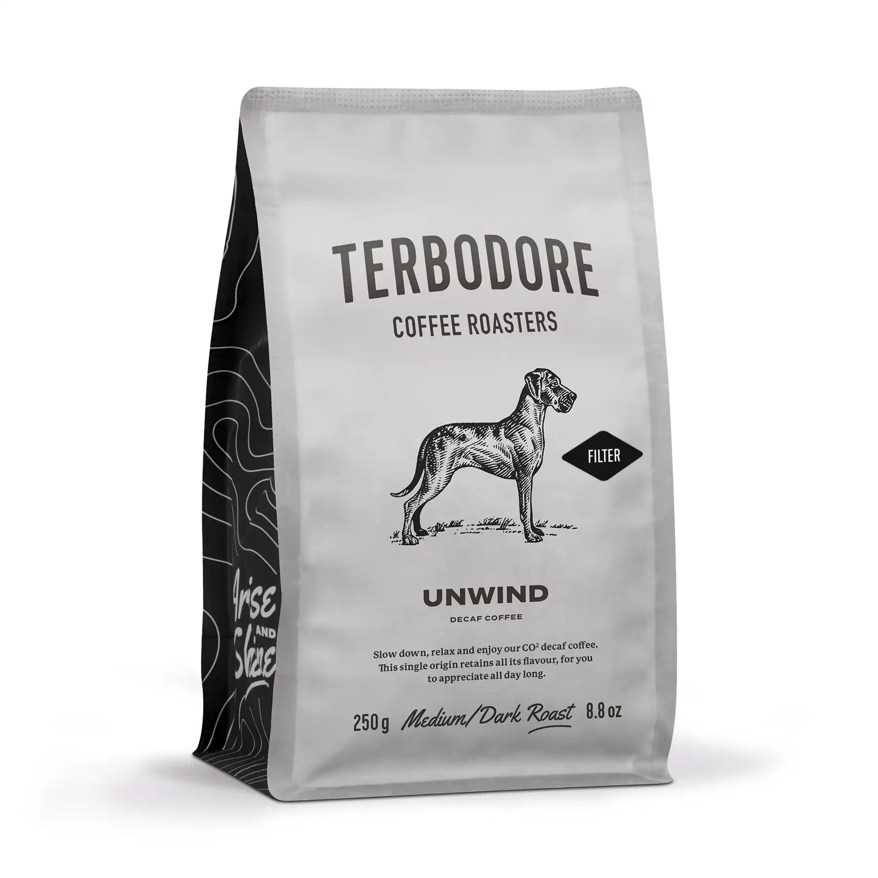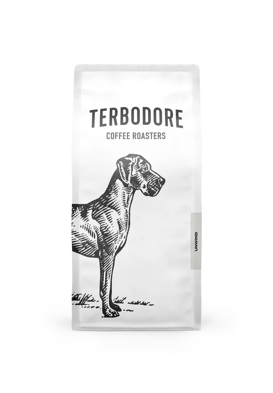 Discover Unwind Decaf – a standout decaffeinated medium/dark roast blend from Terbodore Coffee Roasters, hand-roasted in small batches in Franschhoek, South Africa. Crafted for those who love deep, satisfying coffee but prefer to skip the caffeine, this blend uses high-altitude beans grown in a drier climate to preserve maximum flavour and aroma during decaffeination.